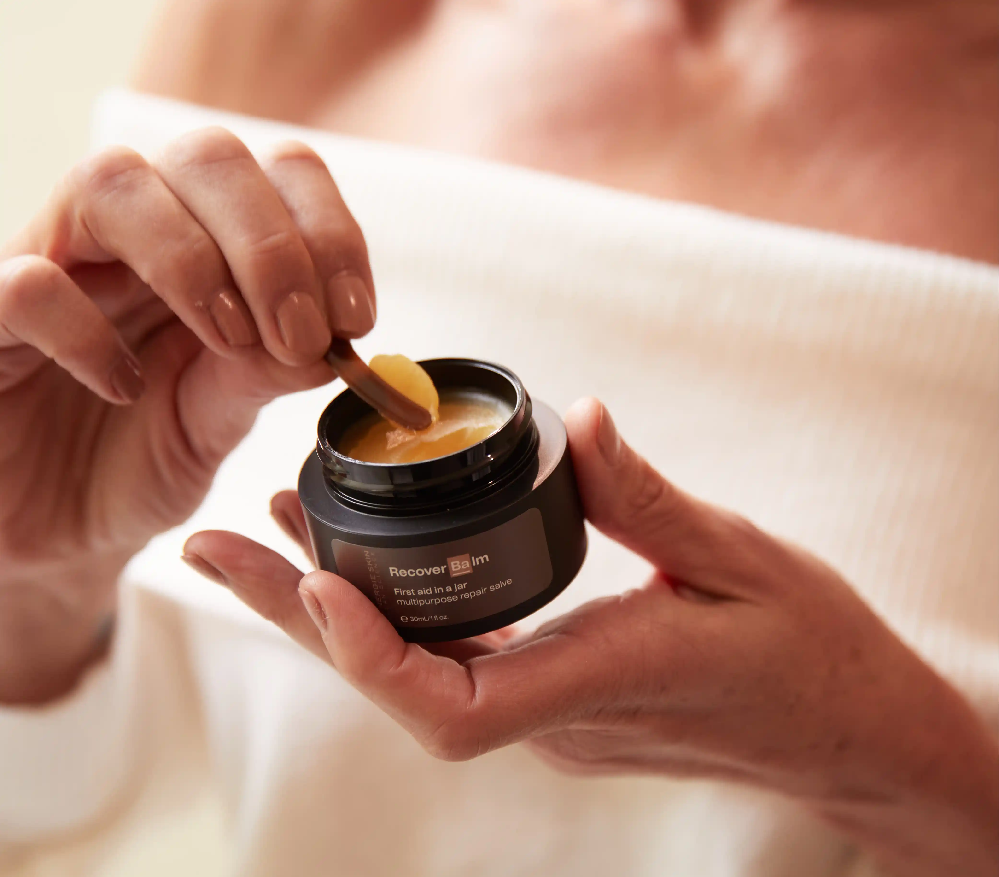 Ik formuleerde Recover Balm als je EHBO-doos in een pot. Gebruik op droge plekken, kleine snijwonden, beten, brandwonden, gebarsten en droge lippen, hielen en nagelriemen. Recover Balm is geschikt voor zowel volwassenen als kinderen en is een beschermende en genezende barrière voor de huid. Het 'smelt' direct in de huid om te herstellen en de genezingstijd te versnellen.
