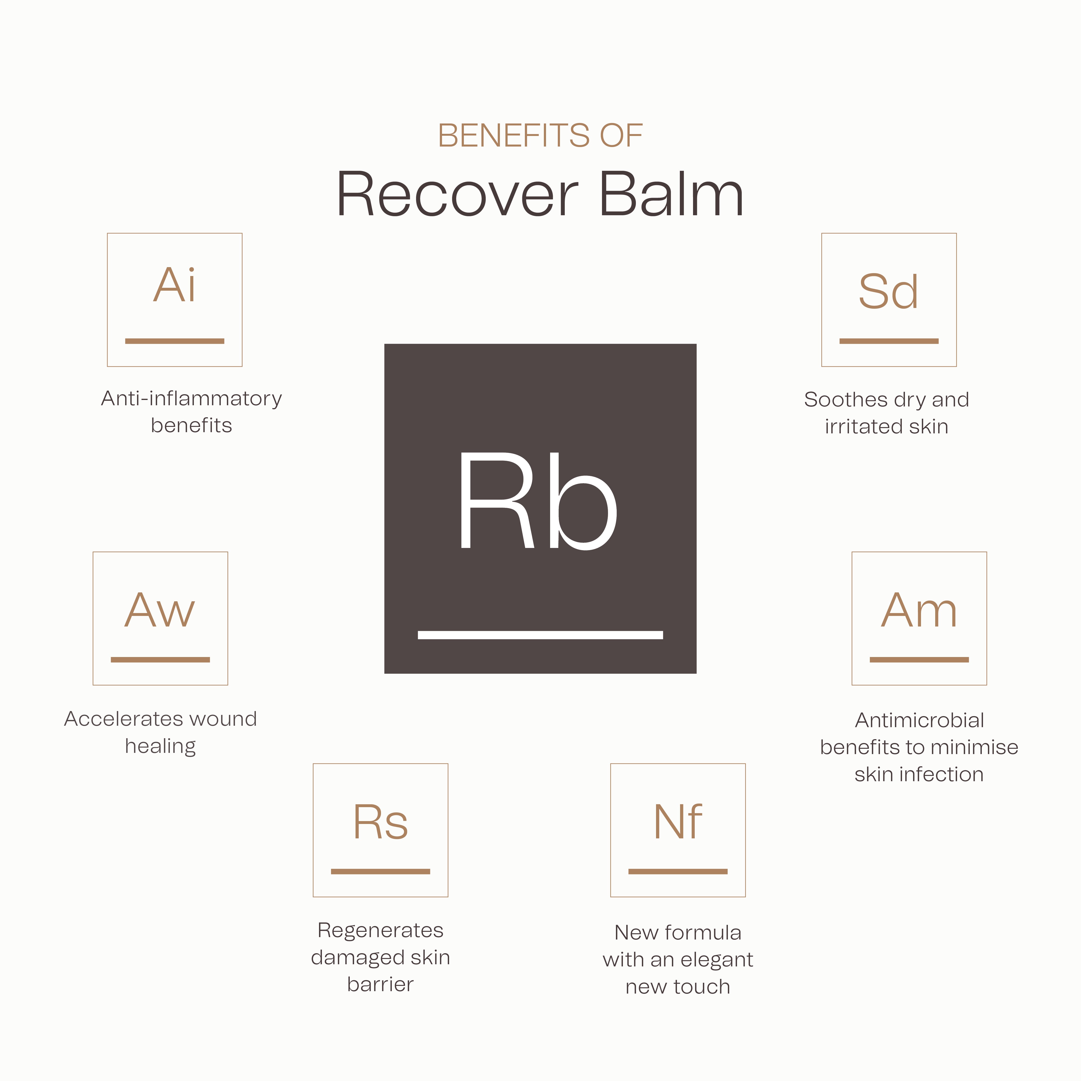 Ik formuleerde Recover Balm als je EHBO-doos in een pot. Gebruik op droge plekken, kleine snijwonden, beten, brandwonden, gebarsten en droge lippen, hielen en nagelriemen. Recover Balm is geschikt voor zowel volwassenen als kinderen en is een beschermende en genezende barrière voor de huid. Het 'smelt' direct in de huid om te herstellen en de genezingstijd te versnellen.