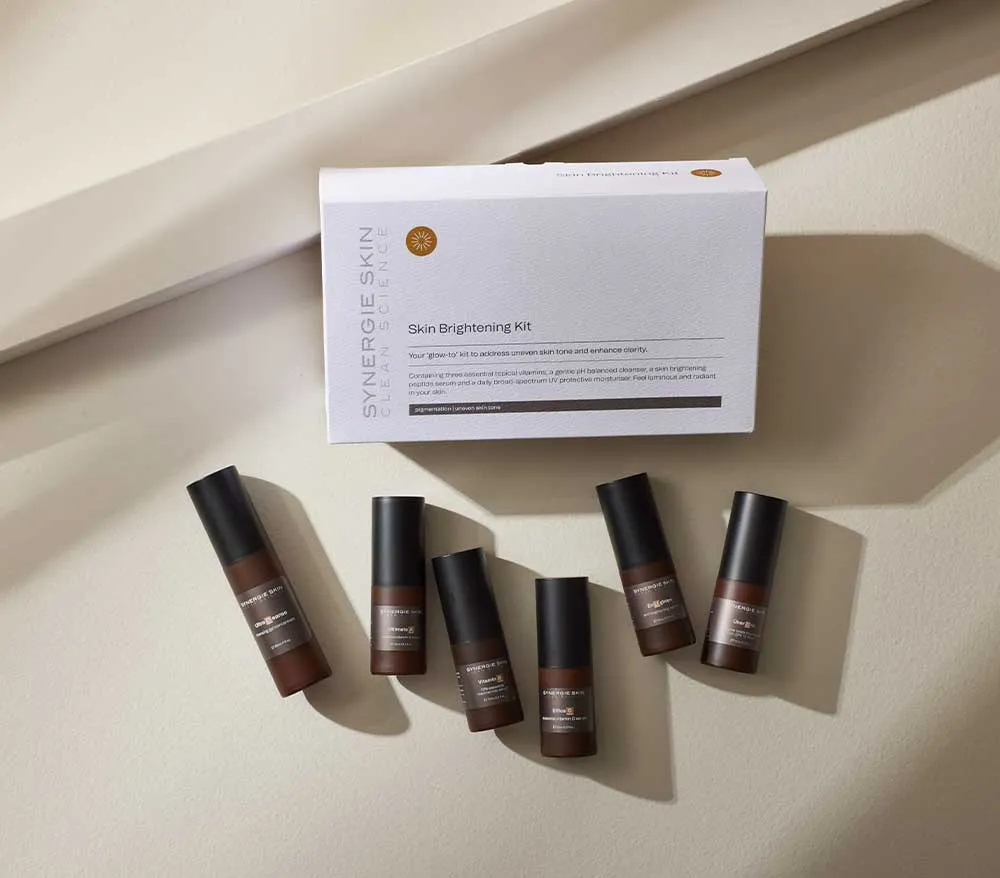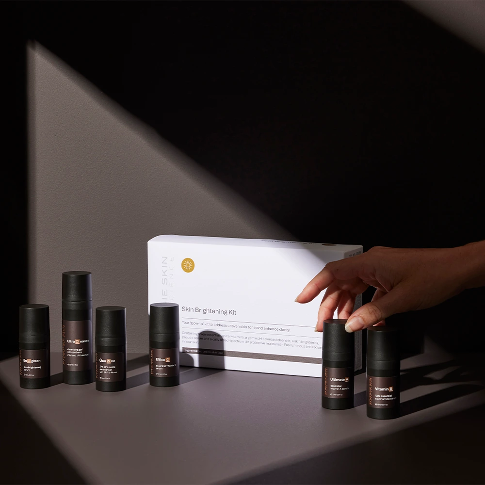 Bevat drie essentiële vitamines; een zachte pH-gebalanceerde reiniger, een huidverhelderend peptideserum en een dagelijkse breedspectrum UV-beschermende hydraterende crème. Voel je stralend in je huid.